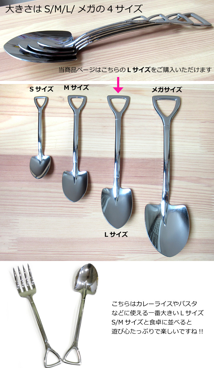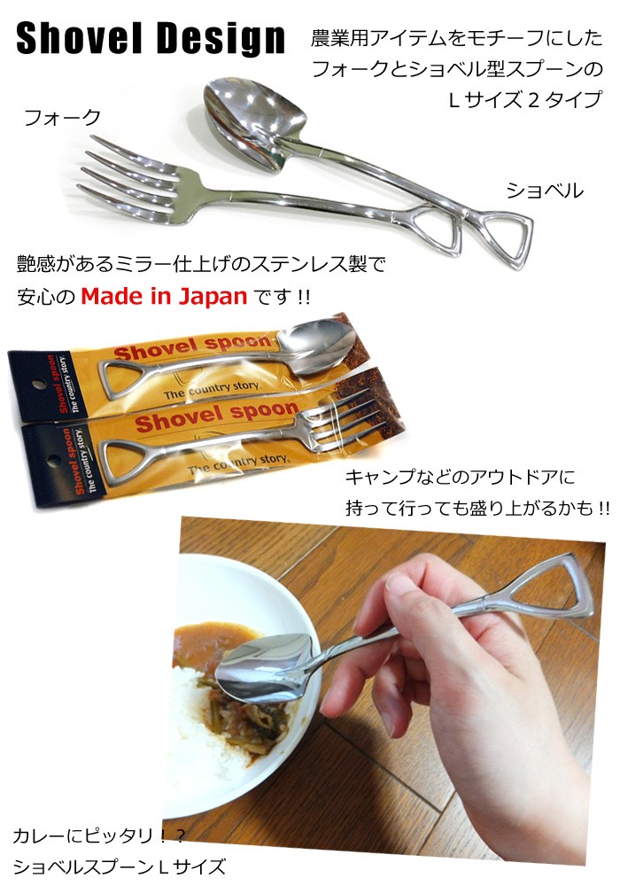 スプーン/フォーク/カトラリー/ショベルスプーン/ショベルフォーク/スコップスプーン/スコップ/シャベル/ショベル/カレースプーン/カレー用/パスタ用/チャーハン/オムライス/農具系/男前系/アウトドア/ピクニック/バーベキュー/キャンプ/ソロキャン/キャンプ飯/ユニーク/ユニークデザイン/ユニークグッズ/おもしろ/プレゼント/ギフト/プチギフト/誕生日/クリスマス/プレゼント交換/ハロウィン/バレンタイン/ホワイトデー/お返し/引っ越し/ひとり暮らし/新生活/結婚式/2次会/景品/賞品/粗品/参加賞/日本製/ステンレス製/ミラー仕上げ/新潟県燕市/燕三条/Lサイズ/キッチン雑貨/生活雑貨/キッチン小物/アメリカン雑貨/ダブルスリー