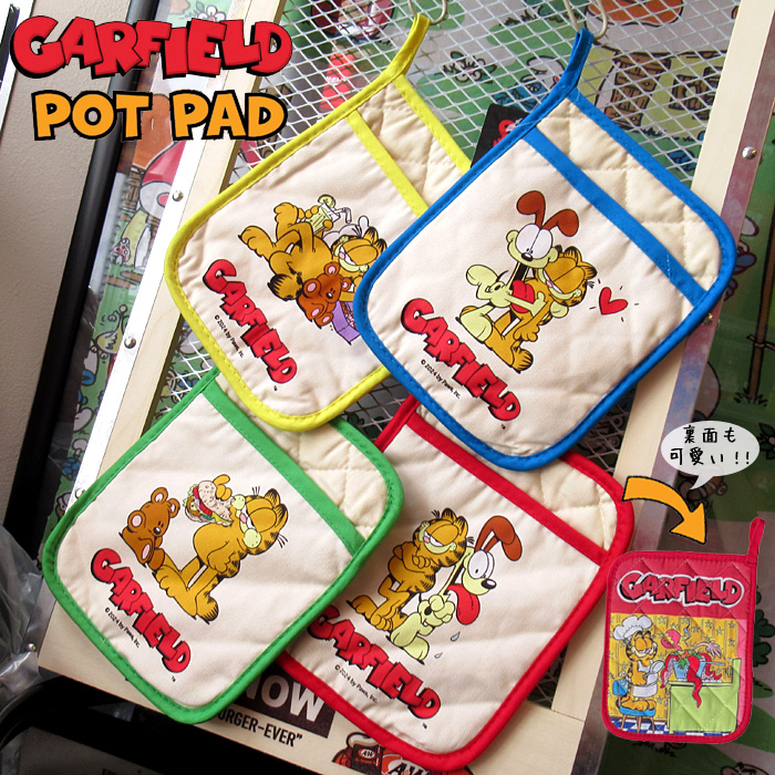鍋つかみ ミトン 鍋しき おしゃれ ひも付き 鍋置き ポットパッド ガーフィールド プレゼント キッチン雑貨 アメリカン雑貨 ダブルスリー
