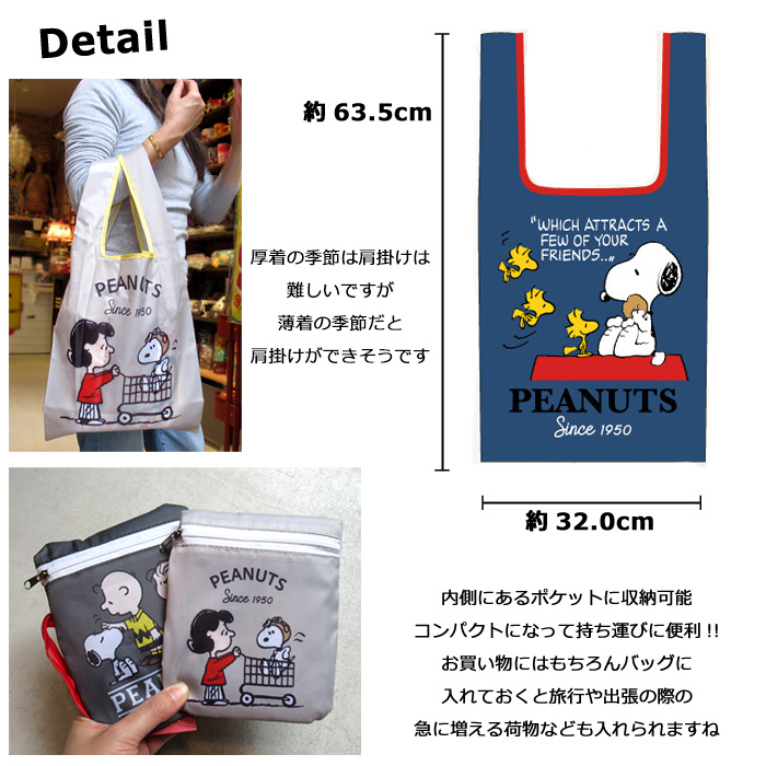 エコバッグ キャラクター スヌーピー 折りたたみ コンパクト メンズ レディース キッズ プレゼント インスタ映え ダブルスリー