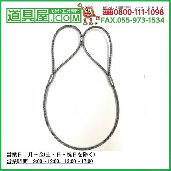| 用途 | ●この玉掛索はワイヤロープの両端に圧縮止め加工をして、荷を吊り上げ、移動するのに使用します。 ●工事現場や各種工場内での玉掛作業・固縛作業用として |