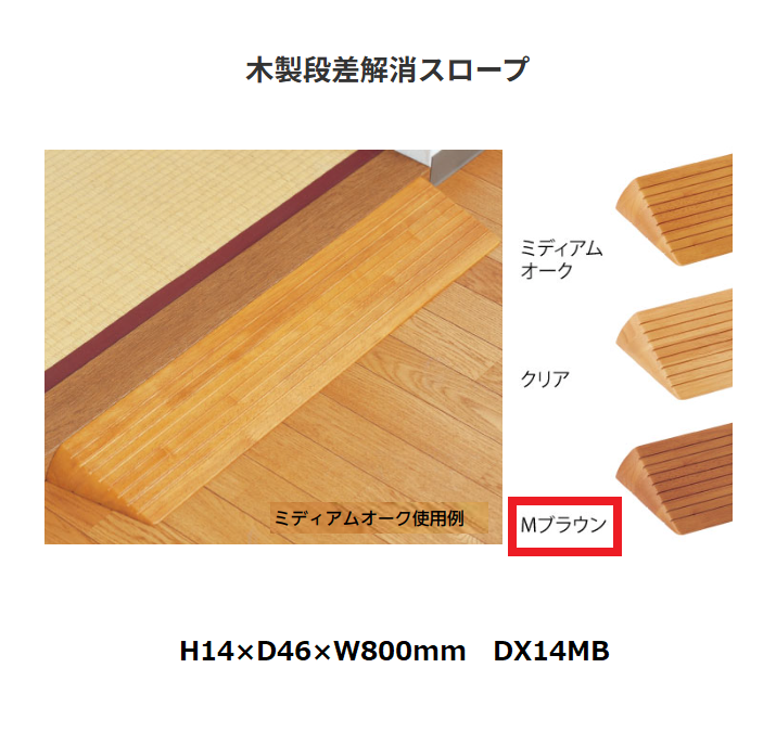 マツ六 木製段差解消スロープ DX14MB H14× D46× W800 色:Mブラウン【代引き不可】