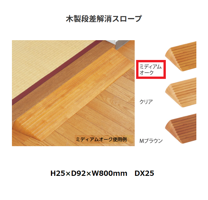 マツ六 木製段差解消スロープ DX25 H25× D92× W800 色:ミディアムオーク【代引き不可】