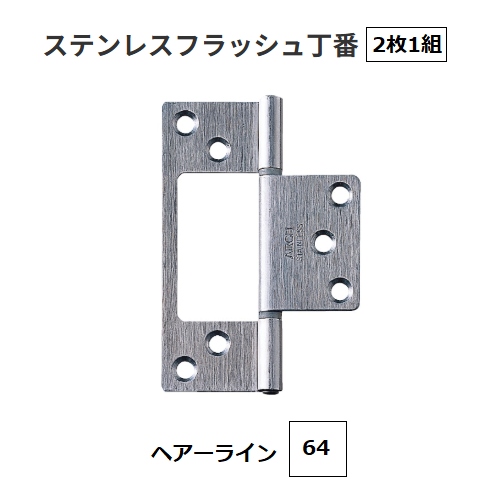 ステンレスフラッシュ丁番ビス付 呼寸法:64 色:ヘアーライン 数量:2枚入り ニシムラ【代引き不可】