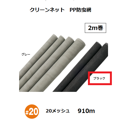 網戸 クリーンネット 小巻タイプ PP防虫網 2m巻 幅910mm 20メッシュ カラー:ブラック 泰東【代引き不可】