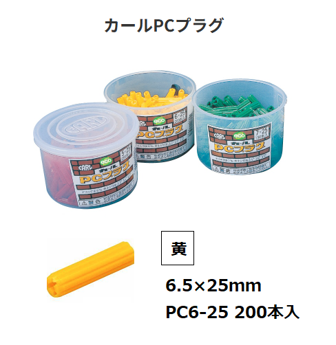カールPCプラグ サイズ(mm):6.5×25 PC6-25 数量:200本入 カラー:黄 オノマシン【代引き不可】