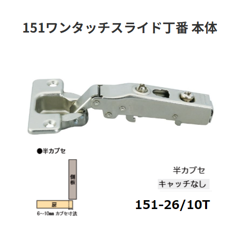 ワンタッチスライド丁番 本体 半カプセ キャッチなし 151-26/10T スガツネ工業【代引き不可】