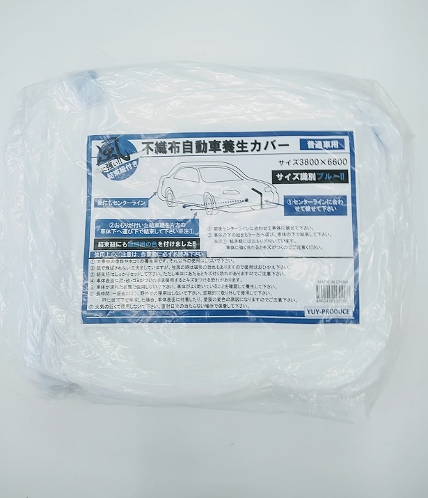 不織布自動車養生カバー 普通車用L 3800×6600 結束紐・センターライン付