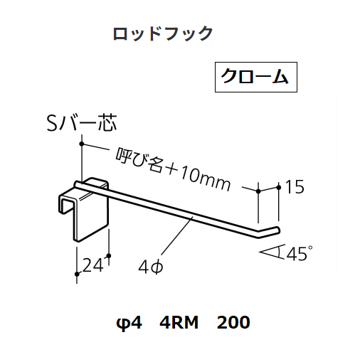 ロイヤル ロッドフック φ4 200 4RM カラー:クローム ROYAL【代引き不可】