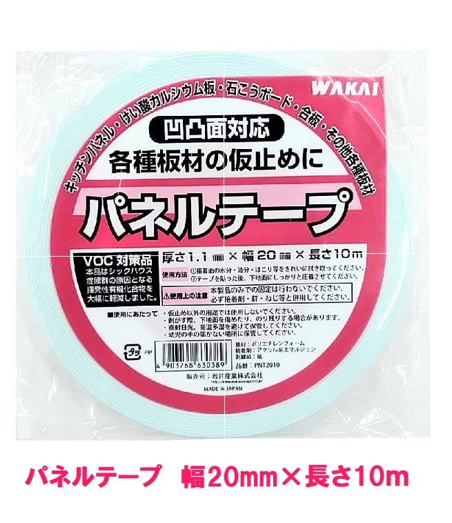 WAKAI パネルテープ 厚さ1.1mm×幅20mm×長さ10m 両面テープ キッチンパネルテープ 若井産業