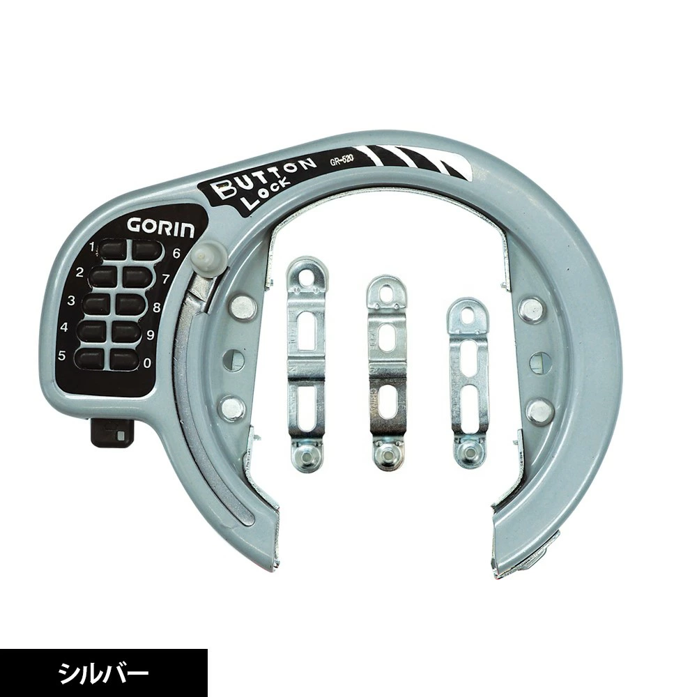 GORIN GR-520|馬てい型リング錠 グレー 車種フレームに合わせて選べる取付バンド3種類付き、大型ボタン式リング錠です。