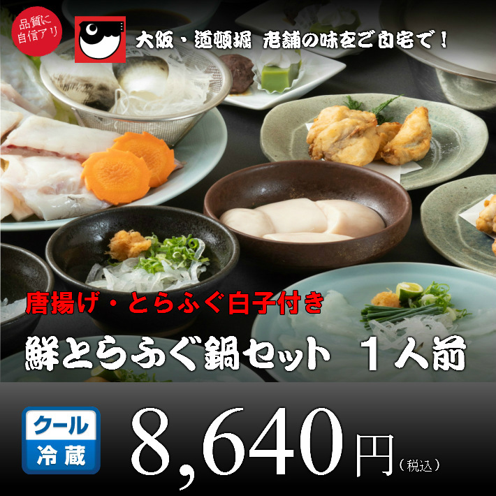 (天然ふぐ唐揚げ・とらふぐ白子付き)大阪 道頓堀 治兵衛 鮮とらふぐ鍋セット 1人前 冷蔵 ふぐセット お歳暮