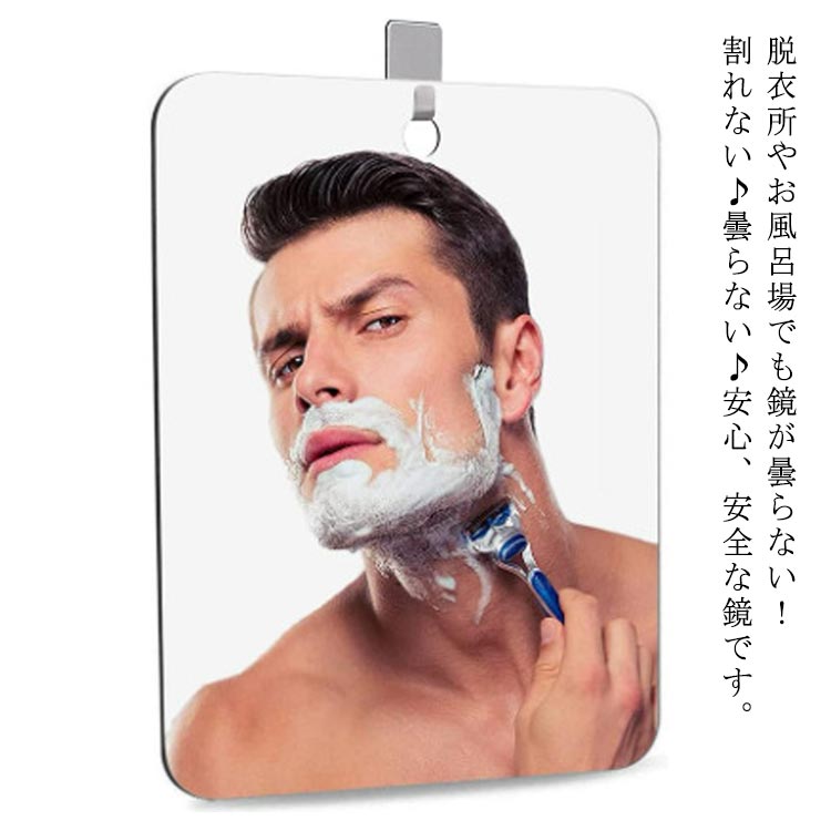 | 脱衣所やお風呂場でも鏡が曇らない!割れない♪曇らない♪ 安心、安全な鏡です。 シャワーを浴びながら髭をそるのに便利なミラー。 ガラスミラーよりかなり軽量な割れにくいアクリル製ミラーで、万一落としても破片が飛び散る心配もなく、災害時にも安心です。 小さいお子様のいるご家庭にもおすすめ。 フック穴ありなので、壁にフックを付けて簡単に掛けたり外したりできます。 バスルームはもちろん、トイレや洗面所、ロッカーやクローゼットの内側や、玄関扉に付けてお出かけ前のチェックにも便利です。 | |