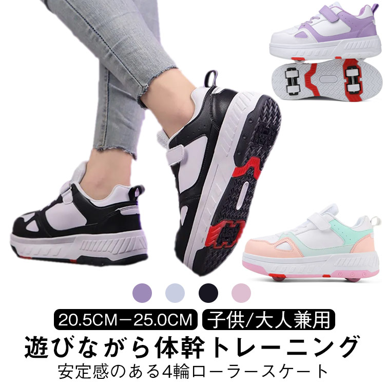 | 【安定感のある4輪ローラースケート 20.5cm−25.0cm 遊びながら体幹トレーニング 子供/大人兼用】 子どもたちに大人気のローラーシューズです! 見た目は普通の運動靴ですが、靴底にホイールが付いていて、風に乗って歩けます。 商品発送の際に、工具が付いて、簡単にホイールの取り付けや取り外しが可能です。ホイールを外せば、普通のスニーカーのように使えます。 サイズは20.5cmから25.0cmまであり、大人も子供も持つことができます。お父さん、お母さんもこの子と一緒に遊ぶことができます。 安全性が高く、初心者でも簡単に履きこなすことができます。他のインラインスケートのように転倒のリスクを心配する必要はありません。 子供の日、クリスマス、誕生日や卒業式などの祝いプレゼントとしてもお勧めいたしますよ! | |