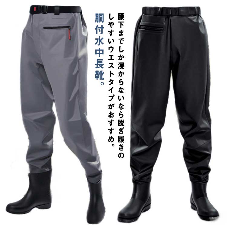 | 腰下までしか浸からないなら脱ぎ履きのしやすいウエストタイプがおすすめ。胴付水中長靴。防水性と必須機能が備わったあらゆる場面で使えるウェーダー! 腰部分のベルトでしっかりとずり落ちしないよう固定、ブーツも短めで軽量化と動きやすさを実現。 チャックポケットも搭載! 普通のウェーダーよりも着脱しやすく、ヒップウエダーよりも扱いやすいです。 かさ張りにくく、柔らかなPVC素材を使用しているので、長靴感覚で気軽に使えてちょっとした作業等に重宝します。 ソールはグリップのいい深溝のラジアル底で、船上でも使え、スパイクとは違って音も少なく、床を傷つける事もありません。 多用途!渓流釣り、農作業、漁業、水産業、除雪作業、冠水時の対応、アウトドア活動など様々なシーンで活躍。 | |