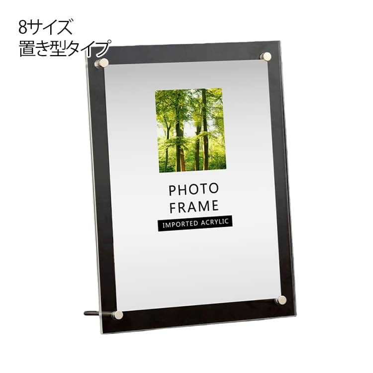 | 透明度の高いアクリル製フォトフレーム。【8サイズ】 【置き型タイプ】 アクリル板を2枚重ねにして、取り付けが簡単なビスで留めるタイプです。 透明度が高く、高品質なアクリル板を選び、写真そのままの風合いを活かせます。 また、ガラス製品のように落としても粉々に割れて飛び散ることはありません。 写真を飾る用途だけではなく、賞状や卒業証書、表彰状、感謝状、許可証、認定書などを入れて飾るのにもぴったりです。 | |