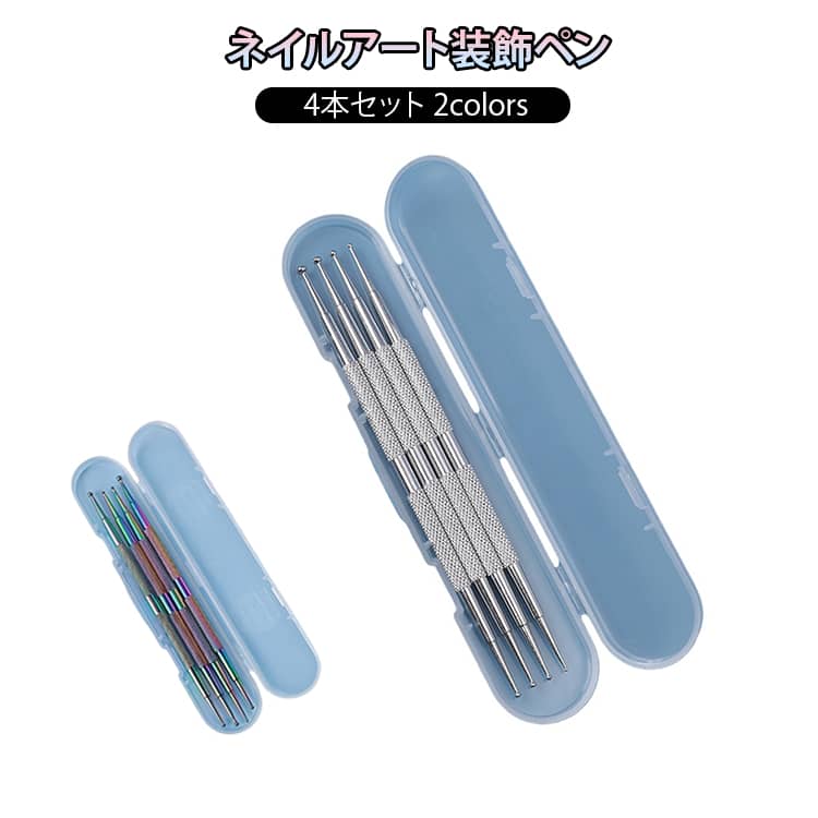 ドット棒 ステンレス ネイルアートペン 4本セット ドットペン 2colors キット ネイルシール 両端使用 ネイル用品 ジェルネイル 自宅で マニ