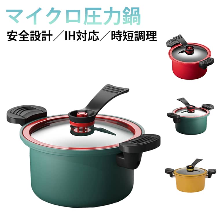 | マイクロ圧力鍋 安全設計/IH対応/時短調理 【やさしい圧力で安心】 一般的な圧力鍋よりも圧力を抑えた「マイクロ圧力設計」を採用。 過度な圧力がかからないため安全性が高く、毎日の調理に安心して使えます。 圧力鍋が初めての方にもおすすめです。 【調理中でもフタを開けられる】 従来の圧力鍋とは異なり、加熱中でもフタを開けて食材の追加が可能。 味の調整や入れ忘れにも対応でき、使い勝手が大幅に向上しました。 【IH・ガス火対応】 IH・ガス火の両方に対応。 ガスコンロでも使用可能ですが、安全性と安定性の面からIHでの使用を推奨します。 【時短&省エネ調理】 熱効率が高く、通常の鍋よりも短時間で調理が完了。 忙しい毎日の時短調理や、省エネ調理に最適です。 【栄養と旨みをキープ】 マイクロ圧力効果により、食材へのダメージを抑えながら、栄養や旨みをしっかり閉じ込めます。 フタには防爆仕様の強化ガラスを採用し、安全面にも配慮しています。 【ご使用上の注意】 ・おかゆ、豆類、リンゴジュースなど泡立ちやすい調理はできません ・沸騰後は中火〜弱火でご使用ください ・食材は鍋容量の2/3以下にしてください ・水分量は鍋容量の1/4以上を確保してください ・金属製ヘラやたわしの使用は避け、柔らかい布で洗浄してください | |