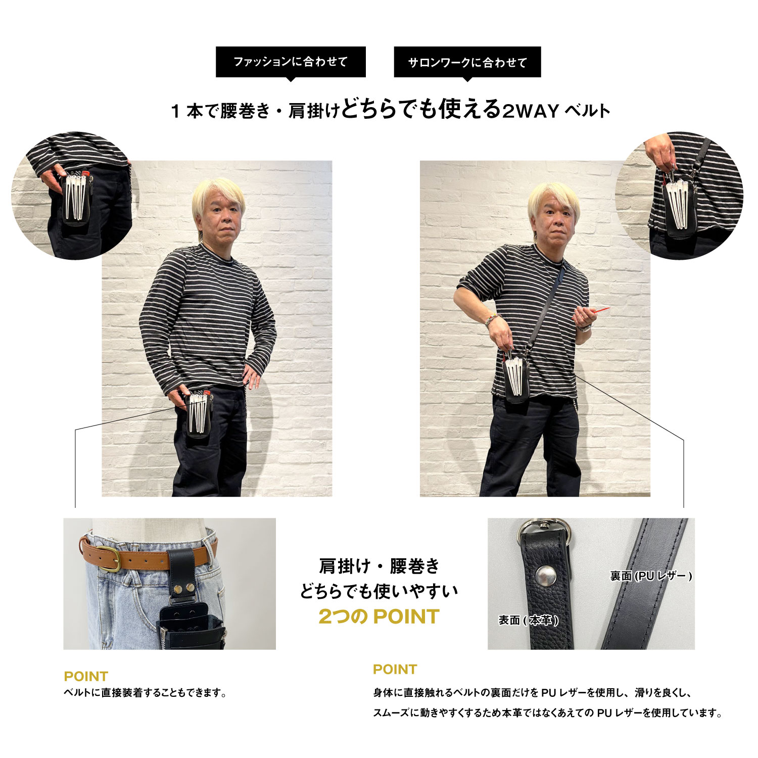 ■上質牛革 ※シザーホルダー、ベルト内面はPUレザーを使用