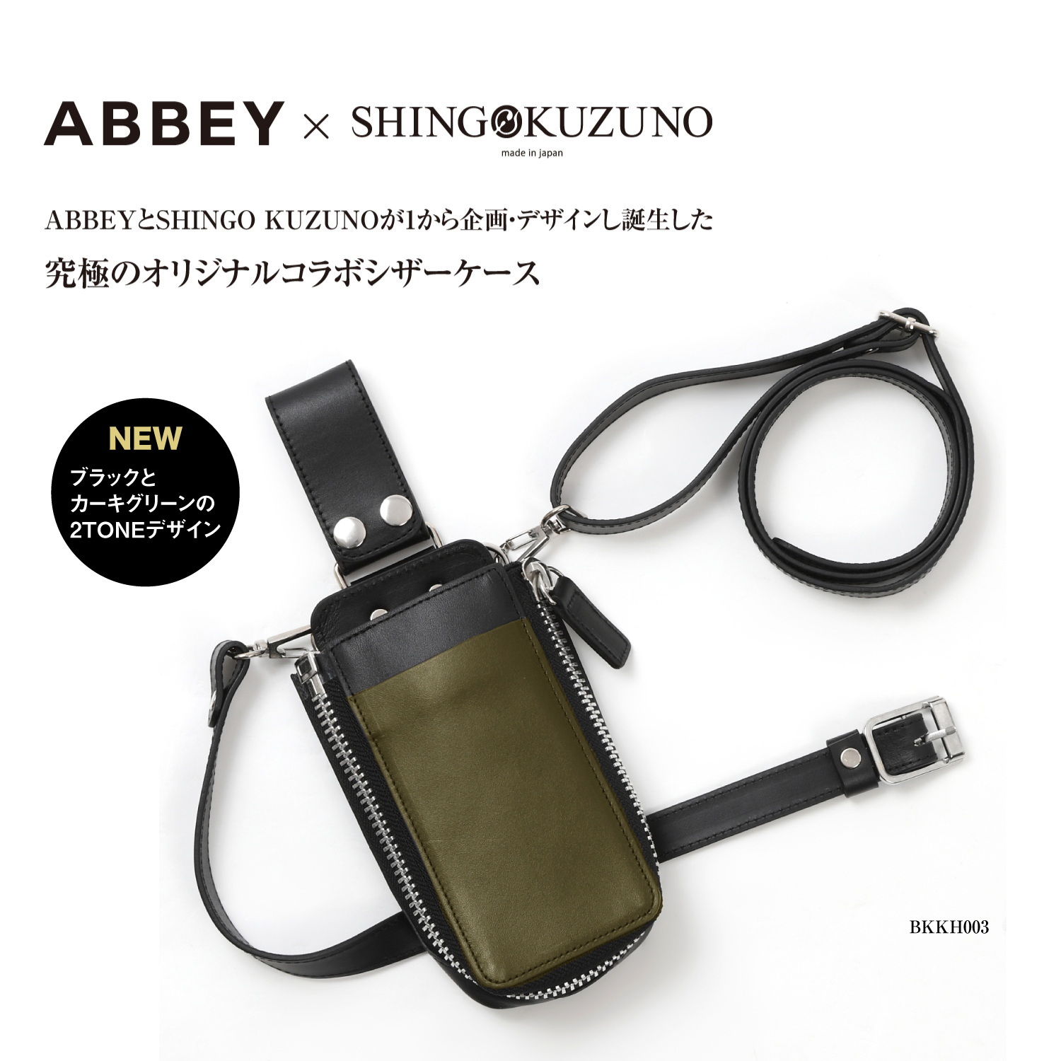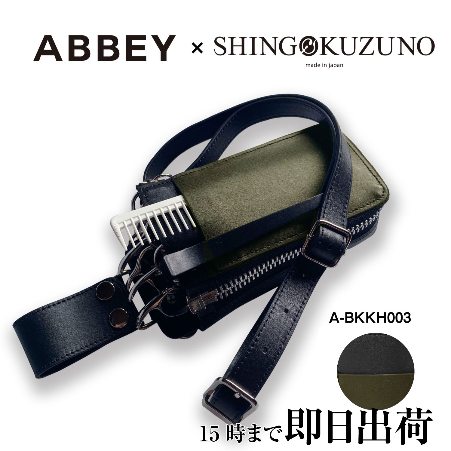 ABBEY × SHINGO KUZUNO オリジナル コラボ ケース ブラック×カーキ A-BKKH003 ロゴ刻印あり 本革 松永英樹 美容師 理容師