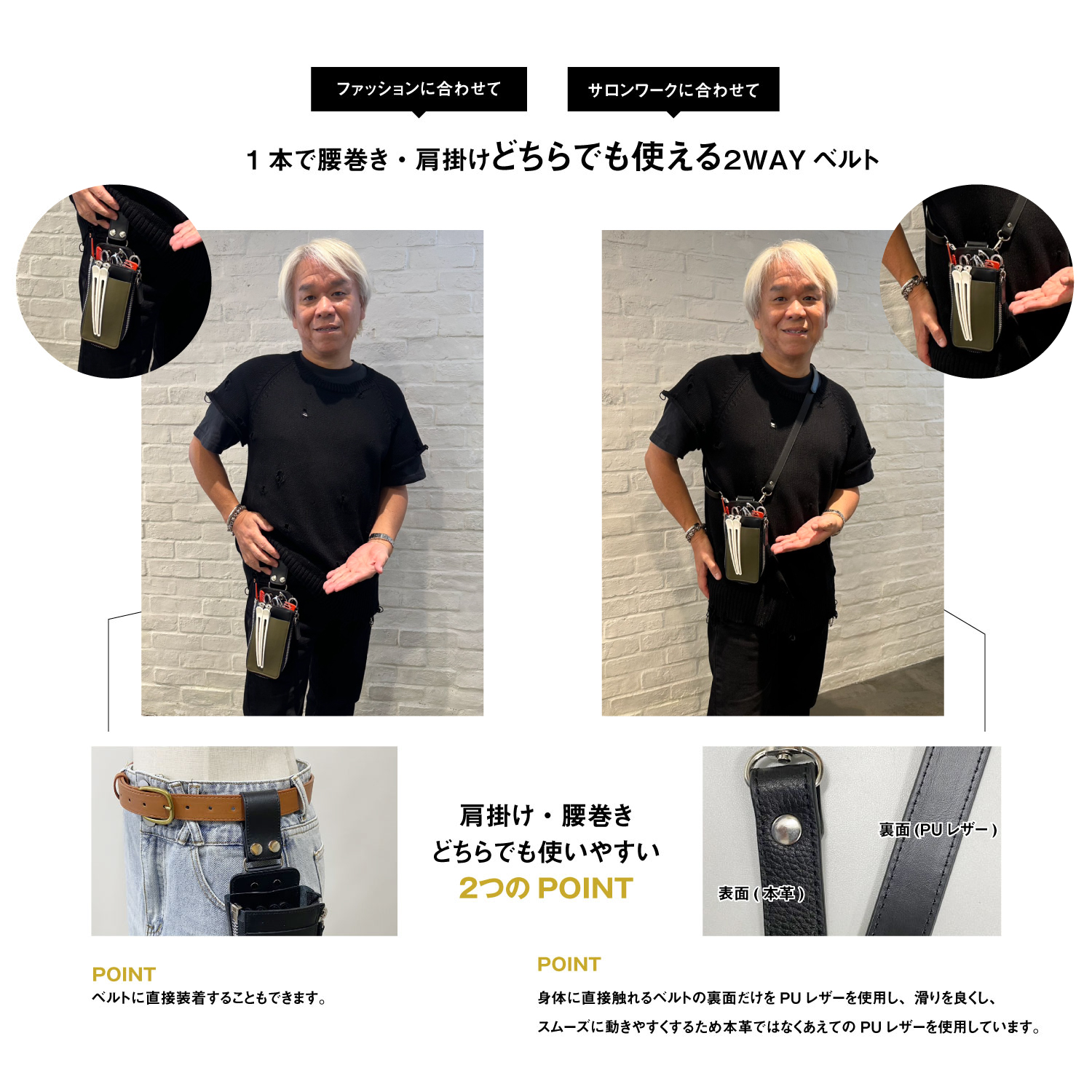 ■上質牛革 ※カーキ部分、シザーホルダー、ベルト内面はPUレザーを使用