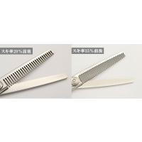 本格鋼材、420Cを採用しプロの方達が使用するハサミを元に作られています。大量生産する事で低価格、高品質な商品に仕上がりました。選べる2種類のスキ率で、用途に合わせてお選び頂けます。20%前後はロングなどの毛量調整、35%前後は刈上げのボカシや毛量調整にお使い頂けます。