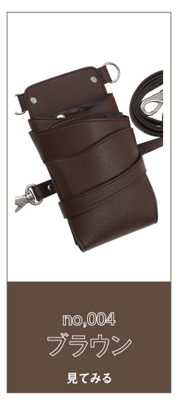 マットな風合いのブラウンのPUレザーに、シルバーの金具を組み合わせたお洒落なシザーケースです。