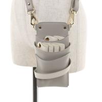 淡いライトグレーのケースにシザーサックとダッカールベルトをアイボリーに配色した、シックなデザインのシザーケースです。