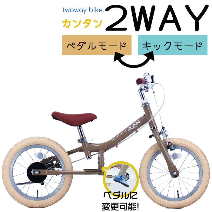 送料無料 ※一部地域限定 自転車練習 キックバイク へんしん バイク サカイサイクル TWOWAYBIKE RUNN TW14 ランニングバイク 子供用自転車 くすみベージュ