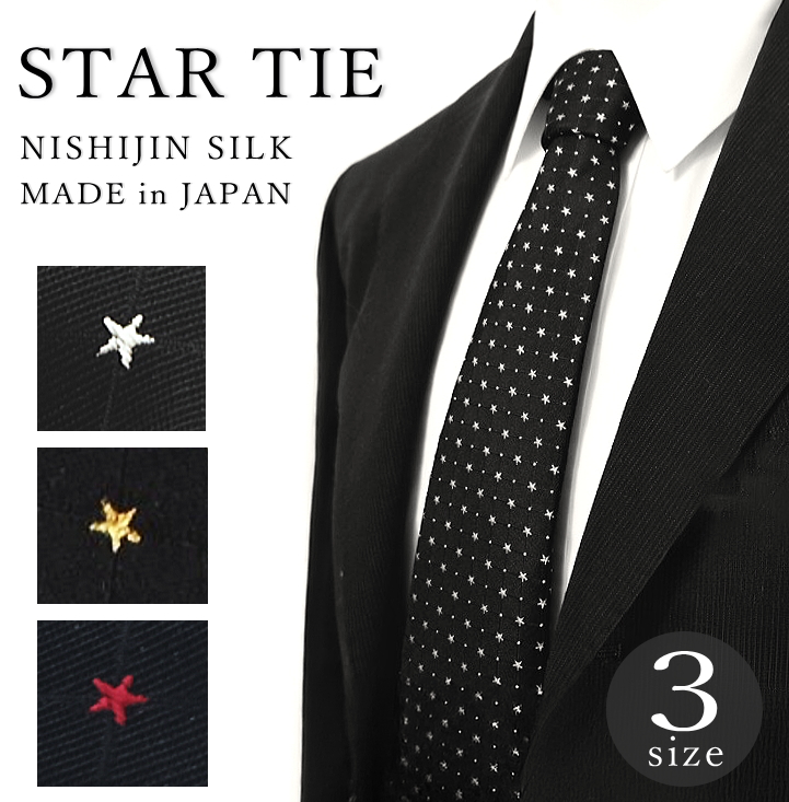 ネクタイ 星 柄 小 スター シルク 黒 赤 シルバー ゴールド 細い 長い ロングネクタイ ナロータイ プレゼント 西陣織 日本製 dplus arts メール便