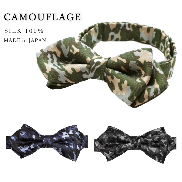 蝶ネクタイ 迷彩柄 カモフラージュ シルク 日本製 京都 西陣織 簡易留具メール便 dplus arts