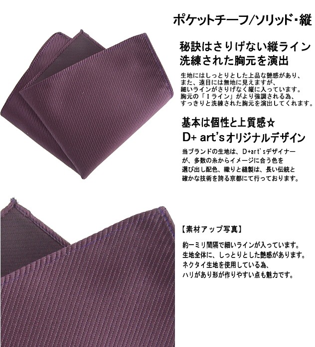 ポケットチーフ ソリッド 縦 シルク 日本製 京都 西陣織 メール便 dplus arts