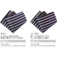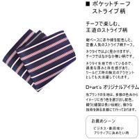 紺ベースに赤や緑を配色した、定番人気のストライプ柄チーフ。