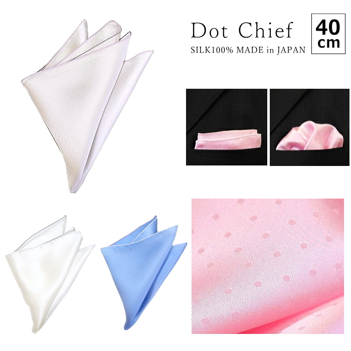 ポケットチーフ シルク 結婚式 フォーマル 大判サイズ 40cm シルバー 水玉 ピンドット 柄 ビジネス プレゼント 衣装 メンズ レディース 日本製 メール便