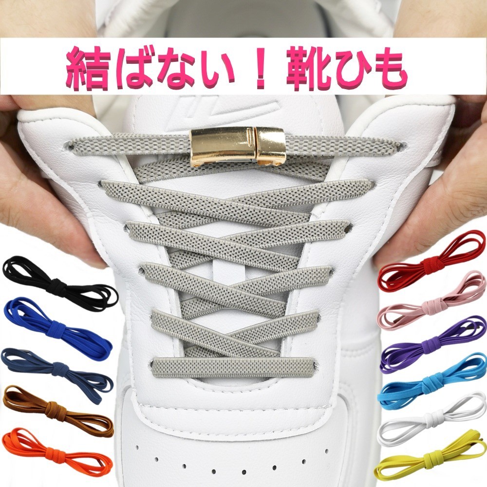 | シューレース 靴ひも ワンタッチ マグネットタイプ 【ゴールド】 おしゃれ スニーカー 紐 ゴム紐 伸びる 結ばない くつひも 伸縮 磁石| 商品詳細 | 【結ばない靴紐】 伸縮性の超高ポリエステル糸製で、高弾性抜群!磨耗に強いのが特徴です。 結ばなくていいので、履くときのイライラを解消します♪