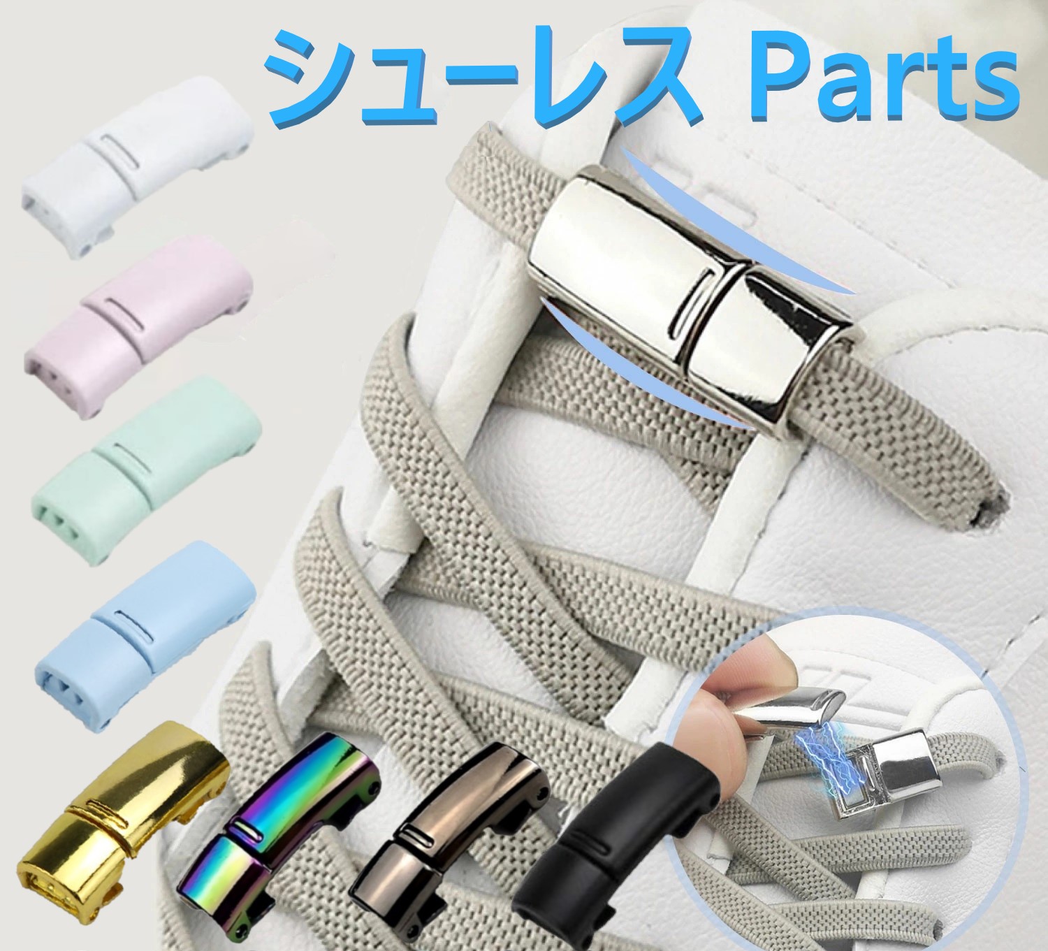 シューレース 靴紐用 金具 パーツ ワンタッチ マグネット 着せ替え 付け替え おしゃれ スニーカー 結ばない くつひも 磁石