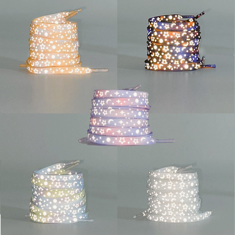 反射 リフレクター 星 グラデーション 靴ひも おしゃれ スニーカー 紐 くつひも 靴紐 かわいい カラフル 発光 光る プレゼント 子供 大人 ハイカットスニーカー