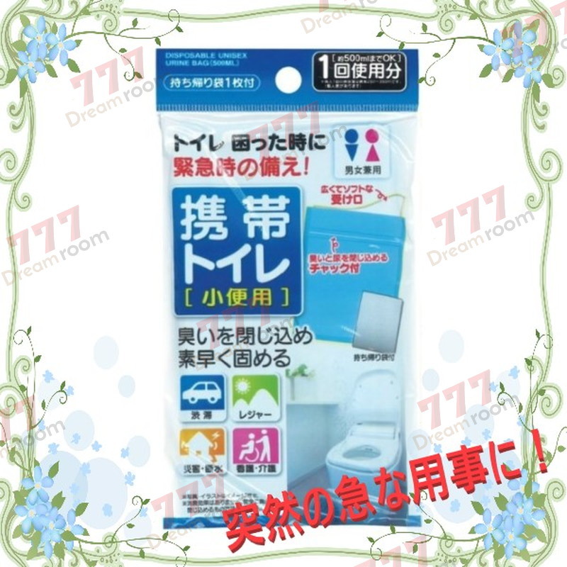 | 携帯トイレ 男女兼用 小便用500ml 持ち帰り袋付 渋滞 アウトドア 災害 安心 | 商品詳細 | 防災グッズ、災害対策、アウトドア、長時間のドライブに! 災害等の緊急時や断水時、車の渋滞や介護等、いつでもどこでも使用できます。 大人、子供、男女問わず使用できます。 広くソフトな受け口で横モレ防止、尿を素早く固めて閉じ込めます。 約500mlまでの尿を吸水ポリマーがゼリー状に固めます。 (健康な成人男性の1回の排尿量は約250?350ccですが個人差があります) チャック付きで尿もニオイも密封します。 ※本品は尿専用で1回の使いきりになります。■内容 凝固材入り処理袋×1 持ち帰り袋x1 ■商品サイズ 【パッケージサイズ】約縦18.5cm×横10cm ■材質 ポリプロピレン、ポリエチレン、高分子吸収ポリマー | | 注意事項 | 〜お届け時期を必ずご確認くださいませ〜 ●在庫ありの商品→国内倉庫から発送(当日〜翌日の間に発送いたします。) ●お取り寄せ→国内在庫がない場合にはお取り寄せとなり、海外自社倉庫からの発送となります。 その際、お届けまでに2〜4週間ほどかかりますので余裕をもってご注文下さい。 ※商品の発送が遅い、着用予定日に間に合わないなどの理由でのキャンセル・返品は受け付けておりませんのでご了承ください。 ※生産ロッドにより若干の仕様変更があることがございます。 ※新品ですが海外製品になりますので、輸送中の傷や汚れがある場合も御座います ※本商品を使用した際に発生したトラブル、事故につきまして、当社は一切の責任を負いかねます。 ※製造メーカーでは無い為、専門的なご質問にはお答えできません。 ※取り付け、適合などはこちらで判断出来かねます、必ず商品ページ詳細や画像をご確認の上ご注文ください。お客様の買い間違いによる返品交換は致しかねます。 ※他店舗との共有在庫の為出品中であっても購入のタイミングによっては在庫切れになる場合が御座います。お急ぎの方は購入前に質問にてお問い合わせ下さい。 ※ストア情報・商品ページ記載の注意事項に同意頂ける方のみご注文ください。ご注文いただいた時点で 注意事項に同意されたものとさせて頂きます。 |