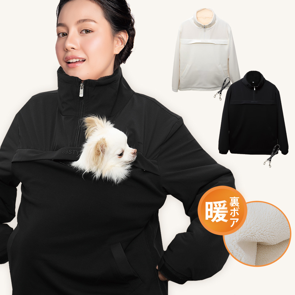 ハーフジップボアブルゾン 裏起毛 アウター ペット 犬 猫 ハグスタイル スリング 男女兼用 ユニセックス カンガルー ハグ 抱っこ 散歩
