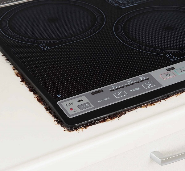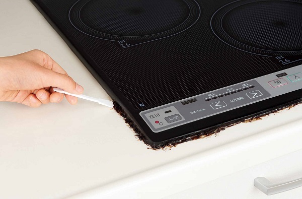 | お料理するたびに溜まるIHの隙間の汚れ…。布巾で拭いても中に入り込んだ汚れは取れにくいですよね。いっそのこと【IH調理器の保護テープ】で隙間を防げばお掃除もラクになりますよ! |