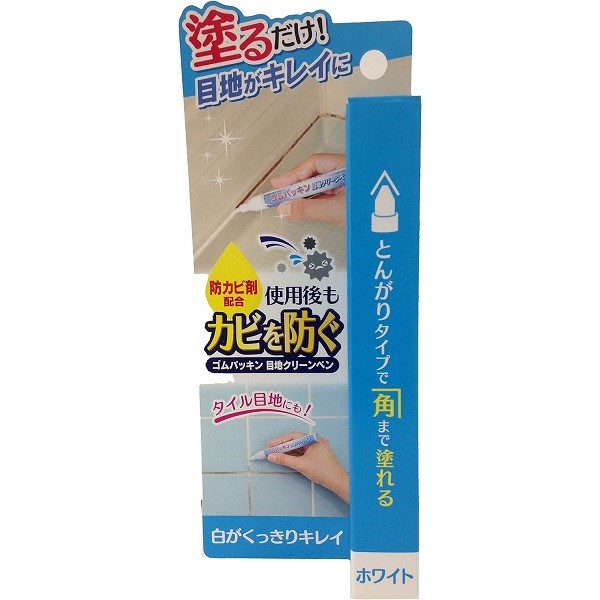 | お風呂、キッチン、トイレの気になる目地汚れにスーッと塗るだけで目地がキレイに!! 角まで届くとんがりタイプで、細かい部分にも使いやすい!使用後もカビを防ぐ、防カビ剤配合です。 |