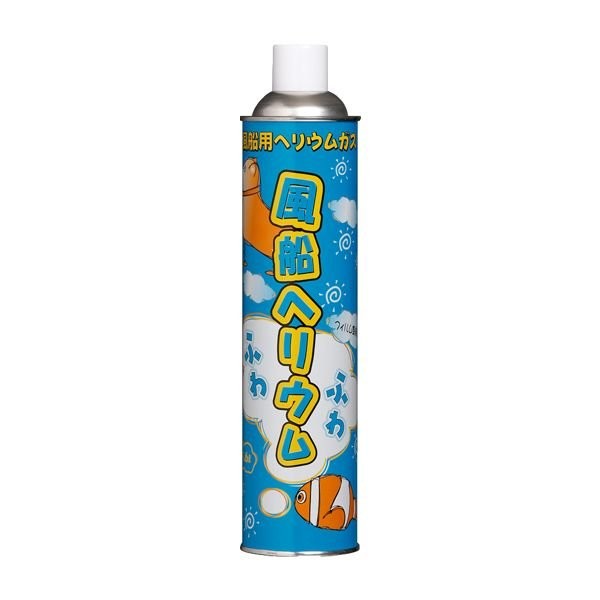 缶側面についているストローを缶上部のボタンに差込み、風船に注入すると…遊園地・縁日で欲しかった、ふわふわの風船が完成!ヘリウムガスは水素の次に小さい原子なので空気より軽い為、風船をふわふわ浮かす事が出来るんです♪