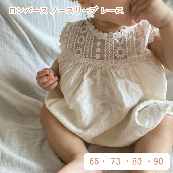 【即納】ロンパース ノースリーブ レース サイズ 80 韓国 ベビー服 森ガール 赤ちゃん 服 新生児 退院着 半袖 紐 ナチュラル ガーリー 前開き 北欧