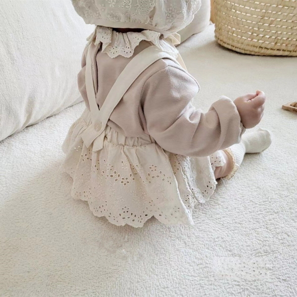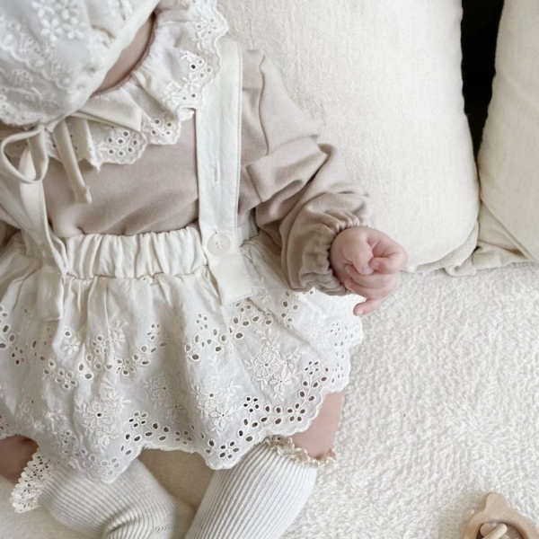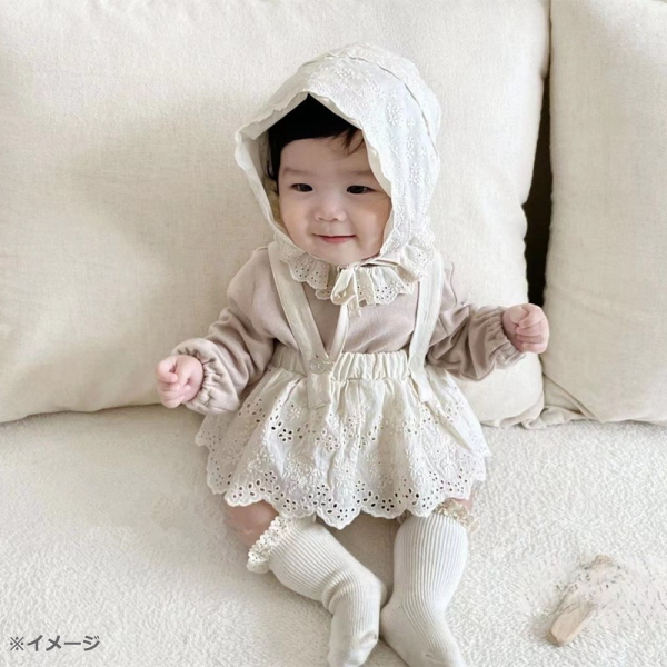 【即納】サロペット レトロ風レース ブルマ オフホワイト 66cm 19610067-4 韓国 ベビー服 赤ちゃん 服 ブルマ フリル ナチュラル ガーリー カバーオール