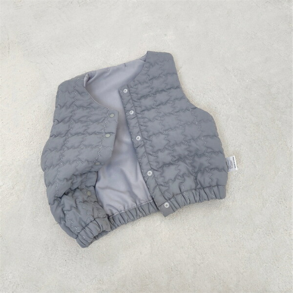 中綿 ベスト グレーブルー (73) ベビー服 トップス ジレ 重ね着 おしゃれ 服 春 秋 冬 韓国風 ナチュラル ガーリー 男女兼用