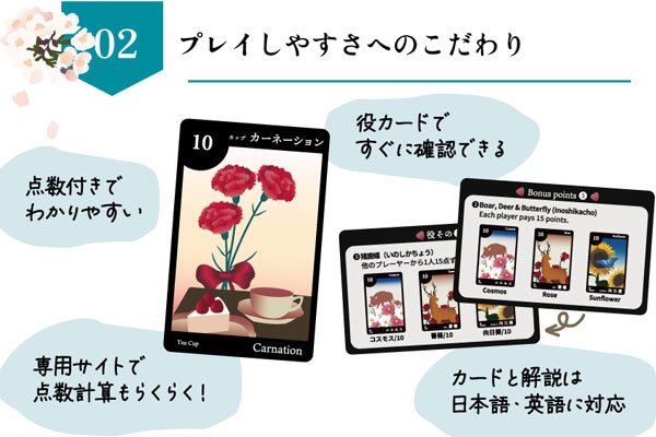 点数入りで並べやすく、さらに役カードで簡単に役をチェックできます。
