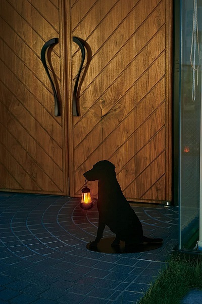 ランタン形状のライトを持って玄関先を明るくしてくれます♪