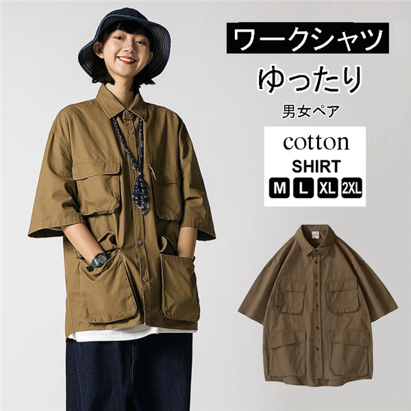 シャツ レディース 半袖シャツ メンズ 綿 ゆったり ワークシャツ タクティカルシャツ 男女兼用 作業着 撮影用 登山用 多機能 ミリタリーシャツ アウトドア