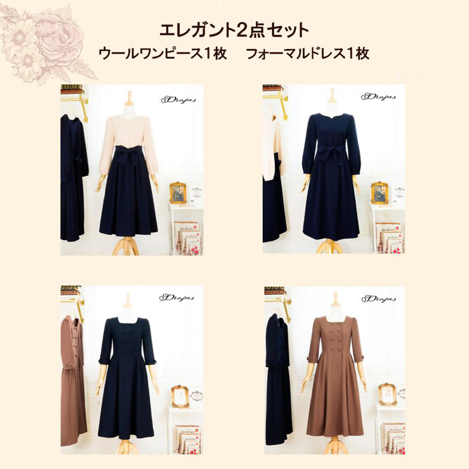 福袋 2026 エレガント2点セット ワンピース ウール フォーマルドレス 入園式 入学式 卒園式 卒業式 ミモレ丈 30代40代 50代