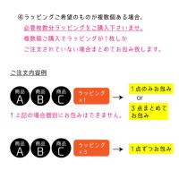 | ●複数個別にラッピングが必要な場合は必要個数分ご購入ください。 ●商品サイズによってはおまとめラッピングできない場合もございます。その際は1点のみのラッピングか、追加でご購入頂く可能性がございます。 ●必ず商品と一緒に買い物カゴへ入れてください。 ●ラッピングのみの購入はできません。 ●複数個ご注文で一部のみラッピング希望の場合、ご注文の備考欄にご記載ください。 ●複数個ご注文でラッピングが1件しかご注文がない場合、まとめてお包み致します。 ●メッセージカードの文字は変更できません。またメッセージ記入も承れませんので予めご了承ください。 ご注文者様と送付先様が異なる場合、明細書をお入れいたしませんのでご安心ください。 |