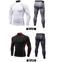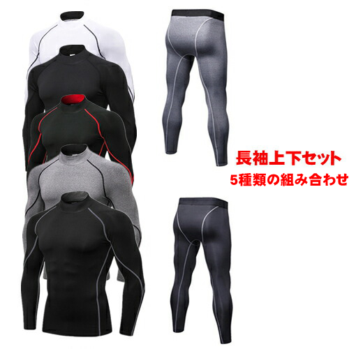スポーツ インナー コンプレッションウェア メンズ 上下 セット タイツ シャツ ハイネック 長袖 インナー シャツ ロングスパッツ